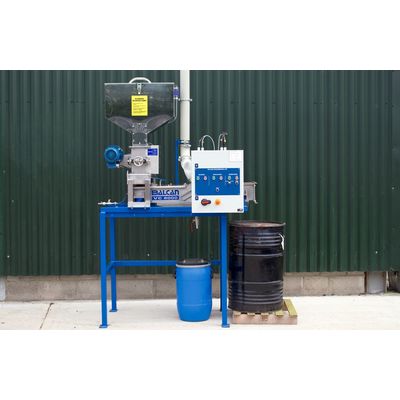 The Balcan VC8000 vial crusher is the Balcan’s high capacity unit. Straying away from the pneumatically operated system balcan has favoured for many years, the VC8000 comes with ATEX (sparkproof) motor to ensure high levels of safety when crushing vials containing volatile or flammable liquids. Operated by contra rotating rollers it is infinitely adjustable and vials down to 2ml (1ml depending on diameter) are easily crushed. Caps, bungs and enclosures are no problem for the crusher. Crushed product drops onto a vibrating mesh where 99% of the liquids drop through into a suitable drum beneath. Glass and solid product are collected at the end in drum.