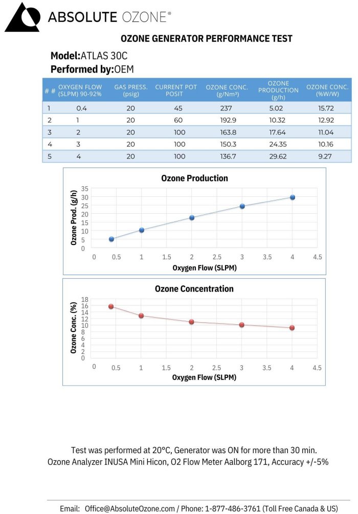 Absolute Ozone - Model Atlas 30C (30 G/H) -High Concentration Ozone Generator