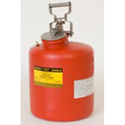 Eagle Poly 5 Gallon Disposal Safety Can provides an intermediate station for temporary storage of liquid chemical wastes. Cans are FM approved and feature a wide 4" spout and cap that locks open to 80 degree angle for easy filling. High density polyethylene (HDPE) construction resists dents and punctures, includes stainless steel fittings and flame arrestor, and is ideal for aggressive chemicals and corrosives.
