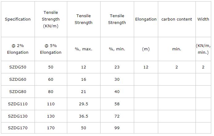 Typem (tensile strength): 50KN/m, 60KN/m, 80KN/m, 110KN/m, 130KN/m, 170KN/m