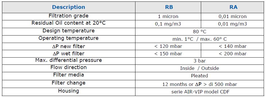 These filter elements provides a quality of the compressed air compliant to ISO 8573-1-2010 directive.