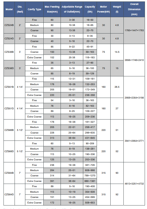 CZS High-efficient cone crusher is a high-performance type optimized and improved on the basis of PY series spring cone crusher. It is widely used in fields of mining, building material, metallurgy, etc. It is suitable for medium crushing and fine crushing on basalt, river stone, granite, quartz, metal ore, etc with high hardness materials.