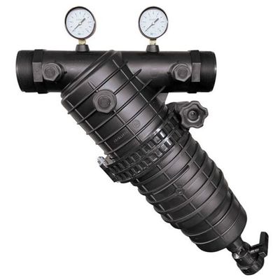The Plastic Filter 3’’ with Screen Centrifugal Super GeorgantiS offers deep filtration preventing various particles from entering the running water during watering. The only plastic filter with Screen Φ140 and includes ¾?extra input for automatic lubrication connection and ¼’ brazen thread for manometer. It is cleaned manually, disassembling the lid, removing the Screen and after rinsing it well, put it back inside the filter and start the filtering process again.