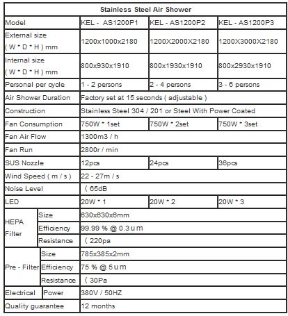K-Ling - Model KEL - AS1200P1 -High Performance Stainless Steel Air Shower Room with HEPA Filtration