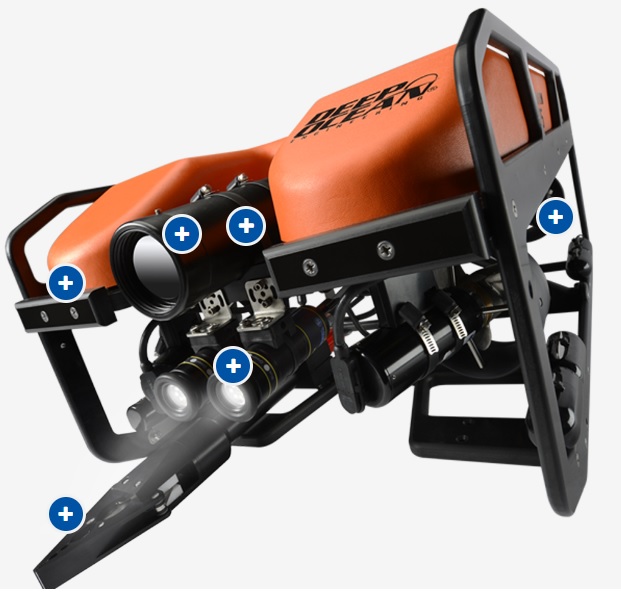 The Phantom T-Series is a rapid deployment high-performance ROV system that provides more power and versatility compared to other vehicles in its class. Its polypropylene chassis is resilient, non-corroding, and maintenance free. The Phantom® T5`s design of its four vectored horizontal and one vertical Tecnadyne® thrusters provides significant control and propulsion in current, with abundant propulsive force to maneuver aggressively in all directions. The T-Series can be customized with three, four, or five total thrusters dependent upon the application.