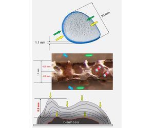 The diffusion depth is approx. 0.5 mm (0.02"); any biomass located deeper than that is not being supplied sufficiently and becomes anaerobic.