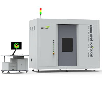 metroVoxel offers a high-precision 3D measurement and analysis system designed for non-destructive analysis and comprehensive internal measurements of products. The system features a grating ruler closed cycle control system and a granitic base for enhanced temperature stability, ensuring long-term high precision with fewer running axles. It boasts a spatial resolution of 2μm and metrology accuracy of 9μm+L/100, and operates with an open, reflection type X-ray source with voltage options of 300KV, 240KV, 225KV, 190KV, and 160KV. The flat panel detector covers an imaging area of 427mm×427mm with a pixel matrix of 3072×3072. Capable of handling samples up to 600mm in diameter and 550mm in height, and supporting weights up to 25 kg, this robust equipment weighs 7500 kg and measures 2770mm in length, 1440mm in width, and 2040mm in height. Compatible hardware and software configurations allow users to tailor the system to specific applications in industries such as oil and gas, geotechnical engineering, and materials science.