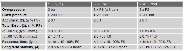 - Piezoresistive technology suitable for static and dynamic pressure measurements