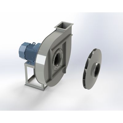 Use: suction of clean or dusty air. These types of high pressure fans are characterized by a high output with saving of electric power as they have a special reverse-blade impeller.
