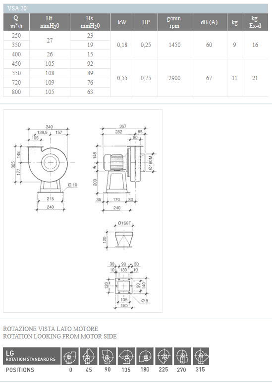Produced completely by injection moulding. Polypropylene housing resistant to UV rays and adjustable to 8 positions. High-performance polypropylene impeller with forward curved blades, statically and dynamically balanced, incorporating a reinforced hub. Gaskets from corrosive material providing protection against shaft/case leakage. Nylon support stool for B3/B5 motors. Stainless steel external assembly fittings. Available with three-phase and single phase single speed motors, two-speed motors with IP55 protection or Ex-d protection.
