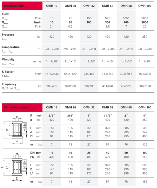 KRAL Volumeter OMH are extremely sturdy and compact measuring instruments. This is due to the in-line arrangement of the measuring screws. Flow conditioning pipes are not necessary since the measurement is independent of the flow profile. The OMH mea- sures in any installation position. Flow mea- surement is possible in both directions.