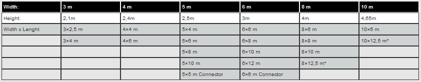 Sizes from 7.5 – 60 m²