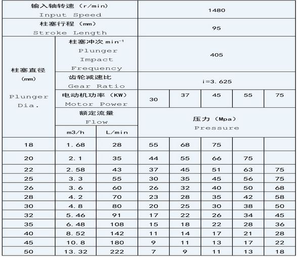 The pump is equipped with in-built chevron gear deceleration device (This device is authorized with the patent of utility models, No. ZL201320288377.2). It has the properties of high transmission efficiency, low noises, stable operation, small size and compact construction. During the running, high-speed shaft can automatically adjust in horizontal direction, which makes it has balanced and reliable transmission, low friction coefficient, high lubrication, low temperature rising at power end, long-time continuous operation, etc. The max.crankshaft thrust force is 38KN.