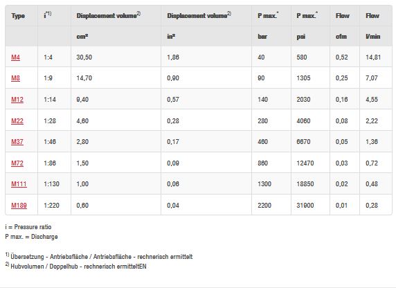 MAXIMATOR pumps M series are available as single or double acting with either a single, double or triple air drive head. For air drive pressures from 1 bar (14.5 psi) minimum to 10 bar (145 psi) maximum.
