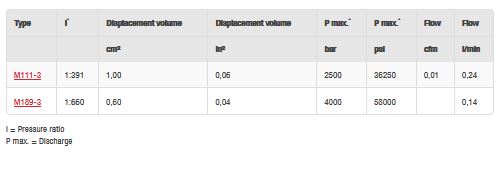 MAXIMATOR pumps M series are available as single or double acting with either a single, double or triple air drive head. For air drive pressures from 1 bar (14.5 psi) minimum to 10 bar (145 psi) maximum.
