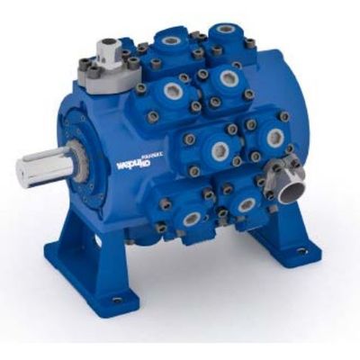 Based on more than 50 years of experience in building radial pison pumps. Easily reversible pumping capacity, short regulating times. Minimal lateral forces on the pistons. No piston retraction problems as the centrifugal force of the pistons self-activates the power connection between piston, guide shoe and the pivoting lifting ring. Various regulating possibilities for any requirement. Low-pulsation pumping. Excellent noise characteristics.