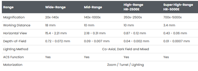 Hirox - Model HR-2500(E) / HR-5000(E) -High-Range Motorized Triple Zoom Lens