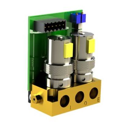 The MPV ultra high resolution, manifold mountable electro-pneumatic closed-loop proportional pressure control valve uses variable orifice valves, eliminating the digital steps of traditional ON/OFF solenoids.
