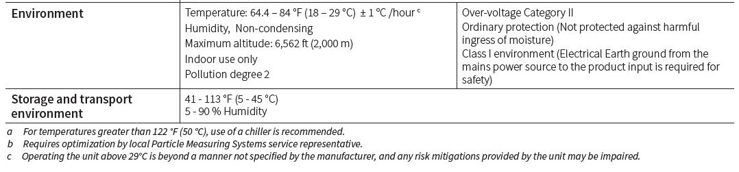 - Sample temperature: 59 – 122 °F (15 – 50 °C)a