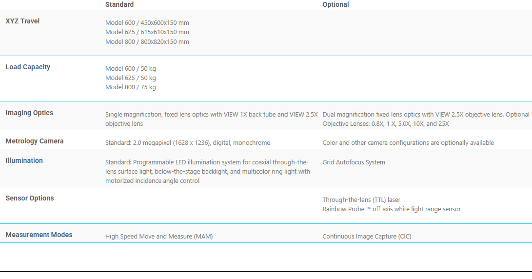 - VIEW Metrology Software (VMS) which offers a wide array of standard measurement tools as well as a built-in scripting language to enable custom-functions.