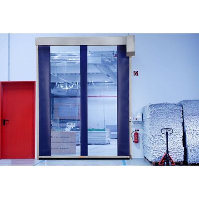 - Power-driven high-speed roll-up door for industrial and commercial use in the materials handling sector