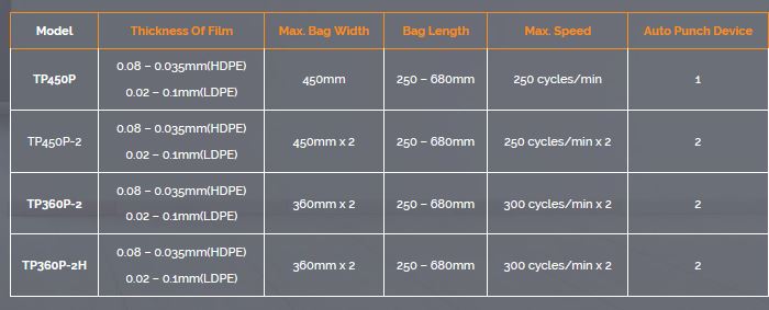 Lung Meng - Model TP450P - TP360P-2H -High Speed Servo-Driven T-Shirt Bag Making Machine