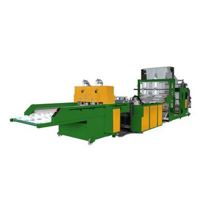 Hydraulic lift unwind unit to make rolls loading much easily. AC motor driving press to maintain even tension of the film. Precise turn-over sealing and cutting section for easy cleaning and maintenance. Automatic malfunction detection – when the abnormalities occur, the machine will stop immediately and an error code will be displayed for warning (Ex: out of film, overlapped film, temperature low and air volume low). User-friendly HMI for easy operation. Swing blocking system to ensure the bags will not be sealed together. Collecting table folding device folds the blocked bags in half.