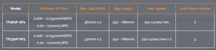 Lung Meng - Model TP360P-SP2, TP330P-SP3 -High Speed Servo-Driven T-Shirt Bag Making Machine