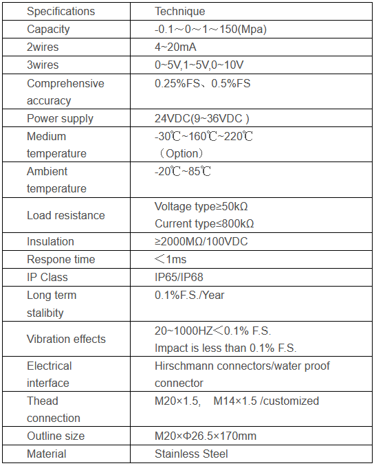 The BST106 is an high temperature ASIC-compensated, high quality, stainless steel. industrial pressure transducer designed for use in the measurement of liquids and gases. This products could operate in high temperature environment. Intended for mid to high volume applications requiring excellent performance, the BST106 succeeds by offering highly competitive pricing. Complete with a fully welded stainless steel housing, high shock and vibration and EMI/RFI protection, the BST106 will survive in the most extreme conditions. Many elements of this industrial pressure transducer are customizable to meet customer packaging and performance requirements.
