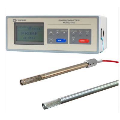 - Temperature compensation circuitry ensures accurate velocity measurements in rapidly fluctuating air stream temperatures