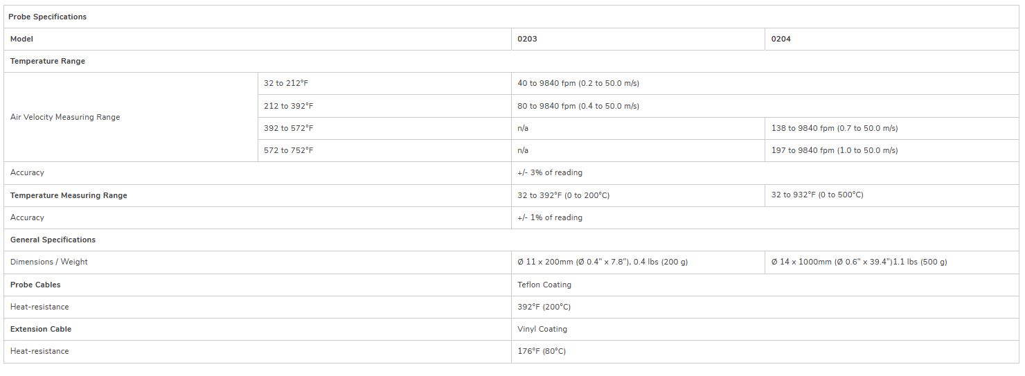 - Simultaneous measurement of air velocity and temperature up to 500℃ (932°F)