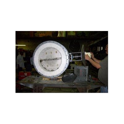 High temperature dampers include a ceramic refractory lining and specialized stainless steel construction to handle temperatures in excess of 2,000 oF. The shaft bearings and electric or pneumatic actuator are isolated from the high temperature through the use of heat shields and cooling fins. The design of the high temperature damper allow the shaft and blade to expand at the high operating temperatures. These dampers are used in thermal oxidizer hot gas by-pass applications and in wet scrubber systems.