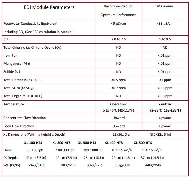 SnowPure Electropure - Model XL-HTS Series -High Temperature Stable EDI for Pharmaceutical Purified Water