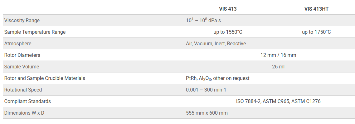 TA instruments vast experience with high-temperature furnace development and manufacture is used in the new viscometer furnace. As a result, the VIS 413 covers the largest temperature range and offers excellent temperature stability and homogeneity. The quality and unique performance of the furnace allow you to measure melt viscosity accurately in the widest temperature range.