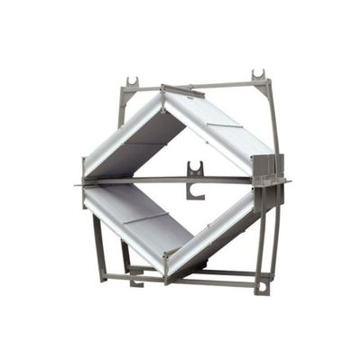 Two superposed units forming a diamond structure. Process designers have the possibility to extract two benefits from the configuration. First the system requires a single layer of support beams instead of two. Second, the total system height is maximum 2.6 m. Comparing the total required installation height of Design I and III the absorber height can be reduced up to 600mm without reducing any comfortable access to the stages for cleaning purposes. Target applications Flue gas desulphurization plants for processes with high turn down ratios Exhaust air treatment plants Waste Incineration plants Material PPTV, PPHT, PP, FRP, PPGC, PSU, Stainless steel 316.