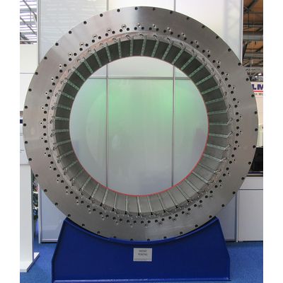 Characteristics, Function: Higher fatigue strength on the front ring (without chip pocket, reduced notch effect). Simpler structure of the knife clamping system (fewer components / longer service life). Avoidance of erosion wear during the machining process. • Longer service life of the front ring. Higher wear resistance of the wear shoes (service life> 1 year). No regrinding and regrinding of wear shoes in the knife basket necessary. Easy replacement of individual wear shoes. • Proven zero setting further optimized. Significantly less cleaning effort compared to centrifugal wedge clamping. Electric automatic screwdriver unit with improved evaluation of the setting data (option). Vibration-dampening effect through modified knife carriers and front ring during the machining process (mass increase).