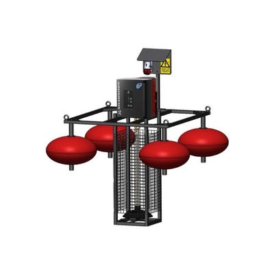 Highly energy effective aereator - Supplies up to 52m³/h of atmospheric air, which is distributed under water in a large volume of water with great efficiency. The oxygen capacity is measured in test tank at 90kg O2/day at 20°C (SOTR).