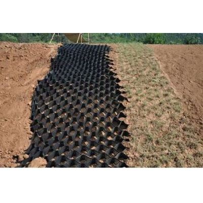 - The geocell is flexible and easy to transport. It can be stretched into a mesh during construction and filled with loose materials such as soil, gravel, and concrete to form a structure with strong lateral restrictions and large rigidity.