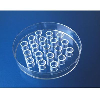 The rings are made of high-grade borosilicate glass, and can be thermally sterilized without problems. The ring faces are ground perfectly flat, enabling the rings to be fixed e.g. to the floor of a Petri dish by means of a suitable grease. Subsequently, the nutrient solution is filled into the ring. The grease provides a seal between the ring and the Petri dish, whereby the precision-ground flat end ensures that very little grease is required to provide an optimum seal. The same applies in the case of Petri dishes prepared with a nutrient solution – here, the seal is provided simply by pressing the ring into the solution and down to the floor of the dish.