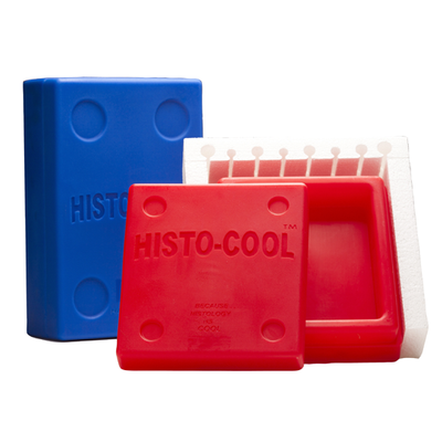 The Histo-Cool was designed to help keep ice frozen throughout the day thus minimizing the need for histology personnel having to go to the freezer and hope there are spare ice trays available. In many instances those frozen ice trays are just not there. The Histo-Cool is designed for as much convenience as it is function. Available in two sizes, Red which holds 20 blocks and Blue which holds 30 blocks. Call for a sample Sizes: Blue – 8 3/8″ x 12 1/2″ x 4 1/8″, Red – 8″ x 8 5/8″ x 2 7/8″.