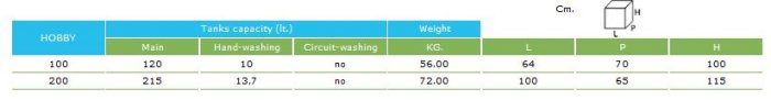 Hot galvanized steel frame. Polyethylene tank. Screw-lid. Strainer filter located under the lid. Hand-washing tank. Suction filter predisposed for self-filling. Diaphragm pump. Pressure regulation unit.