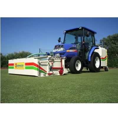 The artificial turf cleaner consists of a cleaning attachment in the front mounted pump and a tank unit in the rear mounting.