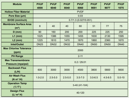 Puritech - Model PVDF -Hollow Fiber Ultra-Filtration Module