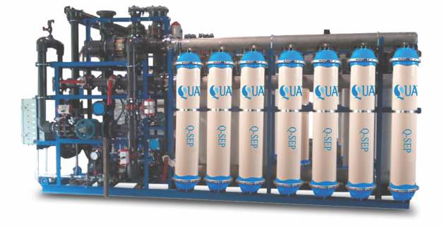 Ultrafiltration (UF) is a membrane process used to remove suspended solids, colloidal matter, high molecular-weight substances, and bacteria and viruses from various feed water sources. UF membranes can achieve a low and consistent silt density index (SDI) and are often used as pretreatment for reverse osmosis using surface water, seawater and biologically treated wastewater as feed source. QUA Q-SEP® UF membranes incorporate high-strength, hollow fibers that deliver superior performance without the risk of fiber breaks. Q-SEP® UF membranes are available in inside-out and outside-in flow configuration. Both types of membranes have excellent low fouling characteristics. These hollow fiber membranes operate under a pressurized flow configuration for superior performance.