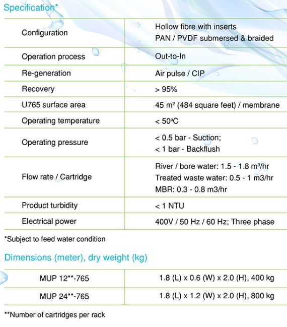 Hydromaster - Model U765 -Hollow Fibre UF Membrane Cartridges