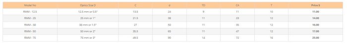 Holmarc - Model RMM Series -Rigid Mirror Mounts