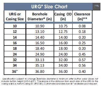 The Full Gauge UR resembles a conventional hole opener. The extendible arms cover 360 degrees of the hole circumference, minus three air slots, similar in size to a conventional bit. We offer URG Overburden Systems between 10″ – 42″ configured with three (3) or four (4) arms for both conventional and reverse circulation drilling.