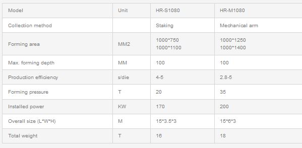 The biggest advantage of this production line is forming cutting and product collection integration, which can increase the production efficiency, reduce the labor cost. The disposable food container production line have different machine models which divided according to collection methods, include Slicing type, Stacking type, Robot arm type (the degree of automation is increasing one by one). The customer can choose the machine models and working plate size according to their requirements.