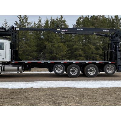 The Hood S-8000 Series high-pressure knuckle boom loader provides an efficient one-man solution to material-handling challenges. Move pole-length trees or utility poles ~ or any job calling for extra lift power or multiple heeling accommodations.