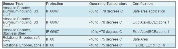 All sensors may be supplied to suit standard marine environment or hazardous condition,zone 1 (Class 1 Div 1).